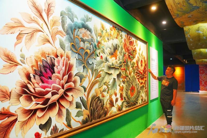 5月10日,哈密市传统工艺工作站刺绣展厅展出的一幅制作精美、立体感十足的刺绣作品。