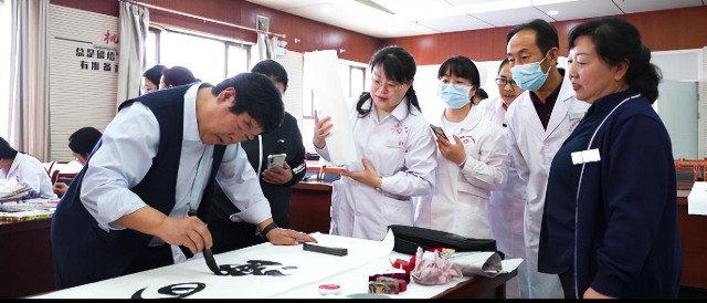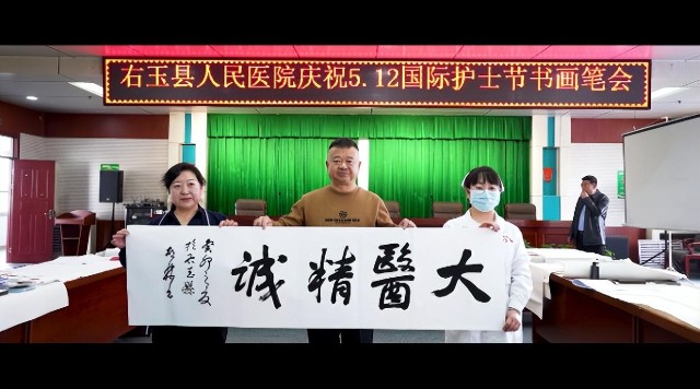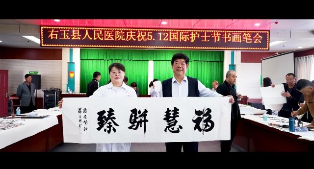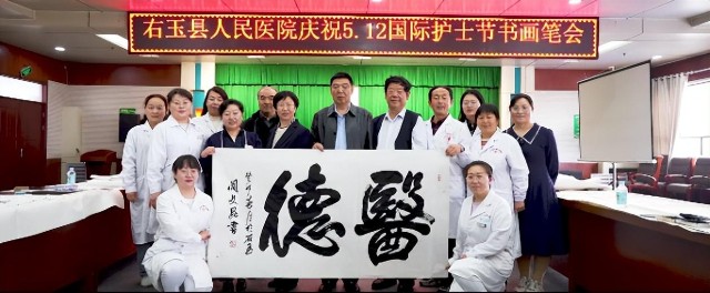 5月11日上午,塞上绿洲右玉,在“5•12”国际护士节来临之际,右玉县人民医院举办“医者仁心 医心向党”为主题的“5•12”国际护士节书画笔会。来自山西老年书画家协会、山西省美术家协会、山西省书法家协会的知名画家、书法家,挥毫泼墨表达对右玉县人民医院一线护理工作者的关心、关爱,以及节日的问候。