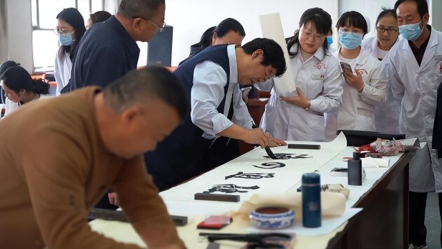 ![]() “精医博学”“宁静致远”“知足常乐”“医德”……一幅幅赞美白衣天使、表达美好祝愿的书法、丹青作品跃然纸上,吸引广大医护人员的围观“点赞”。 “翰墨飘香,群贤毕至。今天,我们广大医务工作者与德艺双馨的书画艺术家和书画爱好者,共同感受着传统文化的魅力,通过视觉上的感受,得到思想上的洗礼,通过艺术上美的熏陶,传递积极向上的正能量。”右玉县医疗集团院长段雁平在致辞中表示,在本次书画笔会中,各位老领导百忙之余题词作画,许多书画家赐赠墨宝,广大书画爱好者积极参与创作,为我们广大医务工作者带来了高品位的精神食粮,进一步丰富了我医院文化的建设,相信本次书画笔会一定会产生良好的文化效应,一定能达到预期的目的。 “医艺同源”,艺术不分行业。段雁平表示,借此机会,让广大医务工作者参与书画展、欣赏这些艺术作品,让大家心理上静一静,放松一下,从美的感受中汲取积极的力量。同时,我也希望我们广大医务工作者,在闲暇之余,根据自己的爱好,练一练书法,描绘一幅丹青,舒缓一下工作压力。 “广大医务工作者坚持人民至上、生命至上,以全方位、全周期保障人民健康为己任,认真落实新时期党的卫生健康工作方针,始终把维护人民群众生命安全和身体健康放在第一位,奋力拼搏、倾情奉献,在各方面取得了令人欣喜的成绩。”在此次书画笔会上,中国老年书画研究会顾问、山西老年书画家协会名誉主席阎文崑,代表与会的书画家发表讲话。 在讲话中,阎文崑勉励右玉县人民医院的医护人员,要把“人民至上、生命至上”要求深刻烙印于思想和行动之中,积极履行人民健康守护者的责任担当,充分展示白衣战士的时代风采,为人民群众生命健康,为医学事业繁荣进步,为医院建设发展,作出新的更大贡献。 ![]() 参加此次书画笔会的书画家有中国老年书画研究会顾问、山西老年书画家协会名誉主席阎文崑,山西省美术家协会副主席、山西老年书画家协会副主席乔亚丁,山西省书法家协会副主席颉林,中国老年书画研究会理事、山西老年书画家协会常务副主席兼秘书长苏占林,山西省书法家协会副秘书长、山西老年书画家协会常务副主席安兴。获赠书画作品的医护人员,纷纷与书画家们合影留念,表达欣喜之情、感激之意。 |