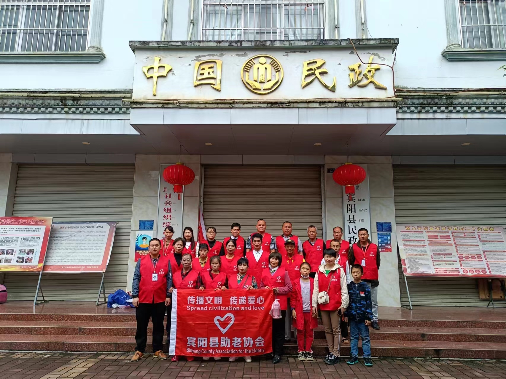 欢迎社会各界爱心加入我们宾阳县助老协会关爱抗战老兵,关爱高龄老人,关爱孤寡老人,关爱退役老兵,关爱空巢老人,关爱残疾老人,传播文明,传递爱心,孝老爱亲,传承雷锋精神,践行社会主义核心价值观!