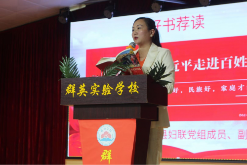 书香飘万家,感悟家国情!活动紧紧围绕“中华好家风”主题,组织开展系列主题教育读书活动。群英学校特邀四组家庭来到会场,进行了精彩的亲子诵读展示。县妇联党组成员、副主席李艳也荐读好书。