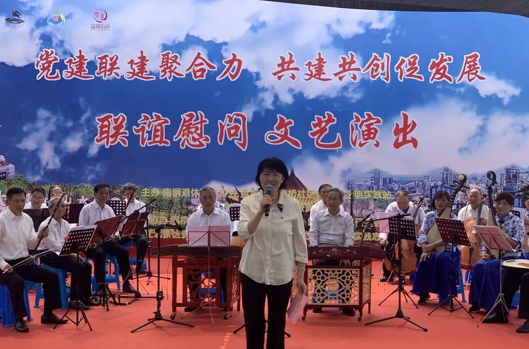 在南钢退休职工协会副会长贺明利介绍到会来宾后,盘城街道渡桥社区党总支书记卞春燕为本次文艺活动进行开场致辞,卞书记首先向莅临今天活动的各位领导、各位来宾表示热烈的欢迎和诚挚的谢意。