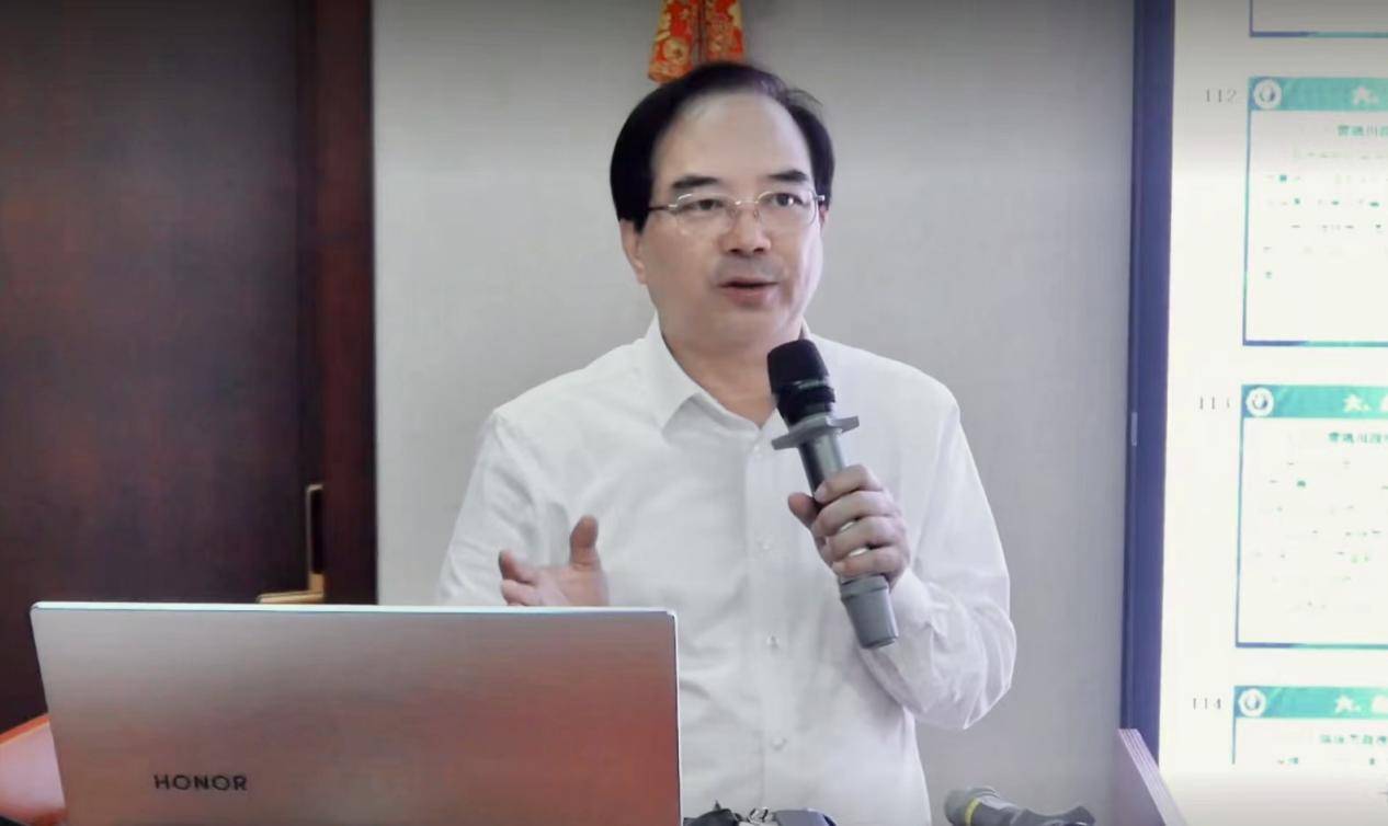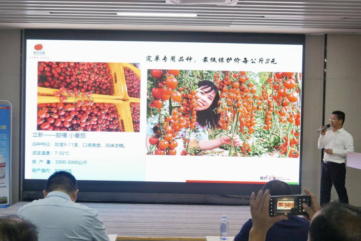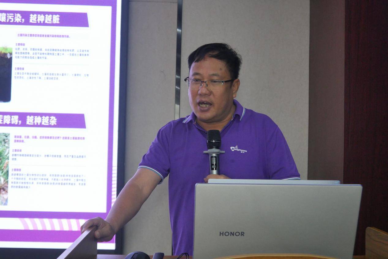 图为:广西现代立新农业科技有限公司赵汉卿董事长,介绍乡村振兴新品种新技术订单产业发展模式。