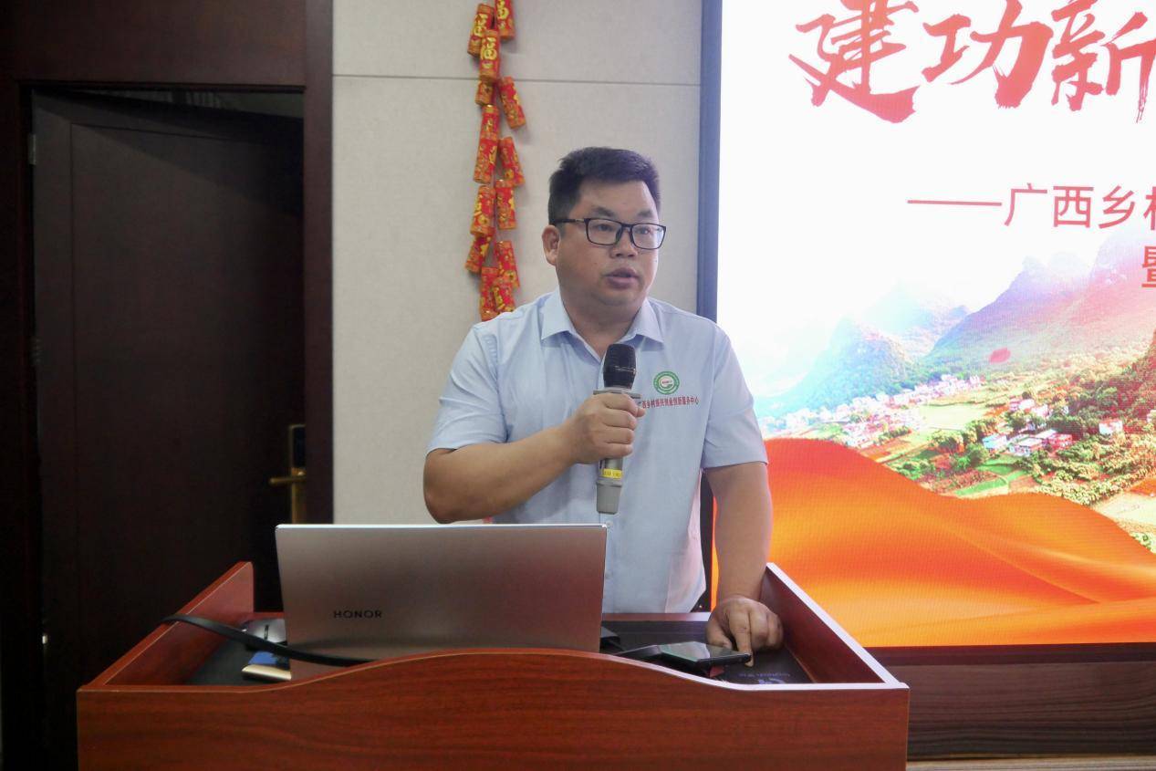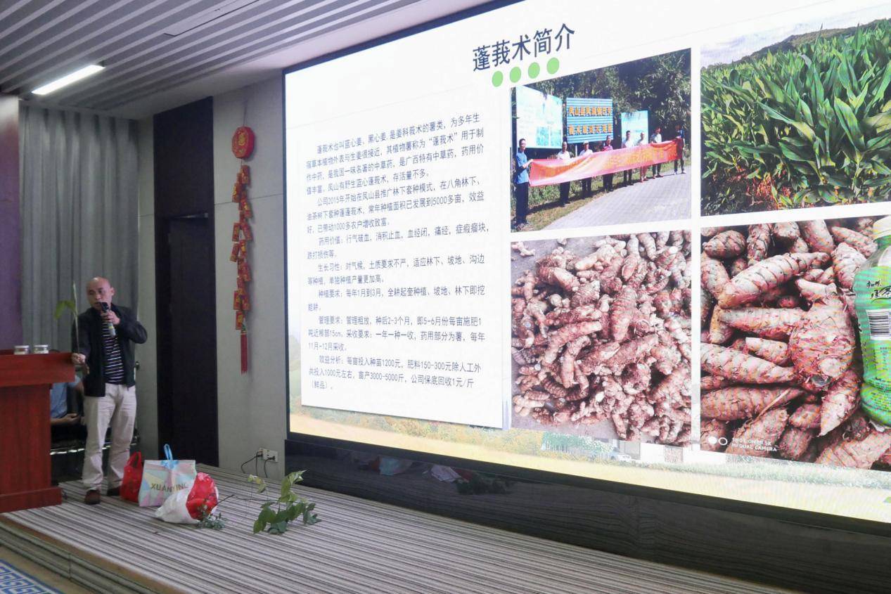 图为:广西芸穗生态农业公司总经理梁宝,介绍发展地方特色药材,林下经济产业品牌示范模式。 本次培训会议邀请到了清华大学技术成果转化(清华清鹿极农生物公司)农业推广项目主任、广西大学农学院教授、高级农艺师吕运博士,广西金融技术学院旅游系、广西乡村振兴学院覃其兴书记、主任书,广西大学科研院成果与合作处黄大安老师,原《广西三月三》杂志社覃祥周社长、广西农业产业行业协会郎传东会长、广西农业信贷融资担保有限公司担保业务部陈泽栋部长、桂林银行南宁邕宁支行黄家武经理,农业产业化国家重点龙头企业、广西立腾农牧发展有限公司吴锦山董事长,广西现代立新农业科技有限公司赵汉卿董事长、广西乡村振兴双创发展促进会副会长贺小芝、广西平果弘步多农牧有限公司韦信伦董事长,柳州迅德科技有限公司党支部书记刘超、经理龚家明、广西芸穗生态农业公司总经理梁宝等二十多位领导专家和行业大咖讲课,培训班以高效率、高质量、高水平助农模式圆满完成。