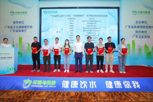 仪式现场,省卫生健康委副主任易学锋、一级主任科员张郝鹏、省教育厅副处长许颖、省疾控中心副主任刘勇鹰同为广东省第三届环境健康宣传系列活动中小学生优秀征文绘画比赛、优秀集体、优秀教师、优秀图文视频等奖项获奖者颁奖。随后四位领导一起参加了2023年饮用水宣传周启动仪式,随着屏幕闪出亮眼的光芒后,2023年饮用水宣传周正式启动。
