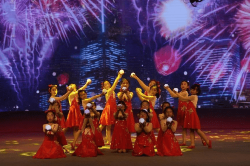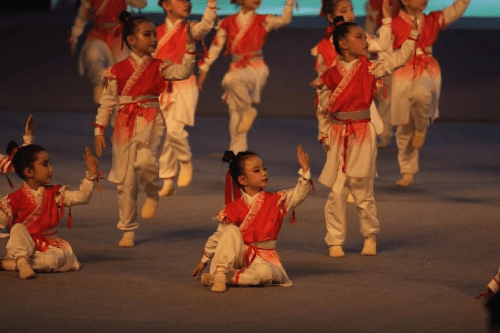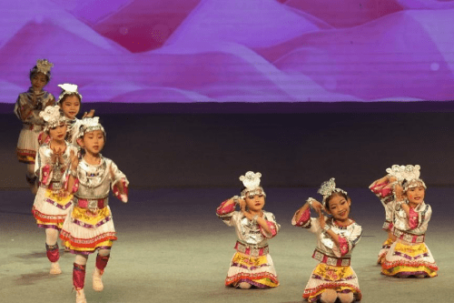 5月14日小朋友表演民族舞《青青竹》 此次展演联合北京广播电视台《非常追梦》栏目组共同录制,近千名小朋友表演了58个节目,包括古典舞、民族舞、拉丁舞、古筝、单簧管、儿童舞台剧、模特秀等多种类型节目,充分展现了新时代少年儿童的聪慧与灵动风采。