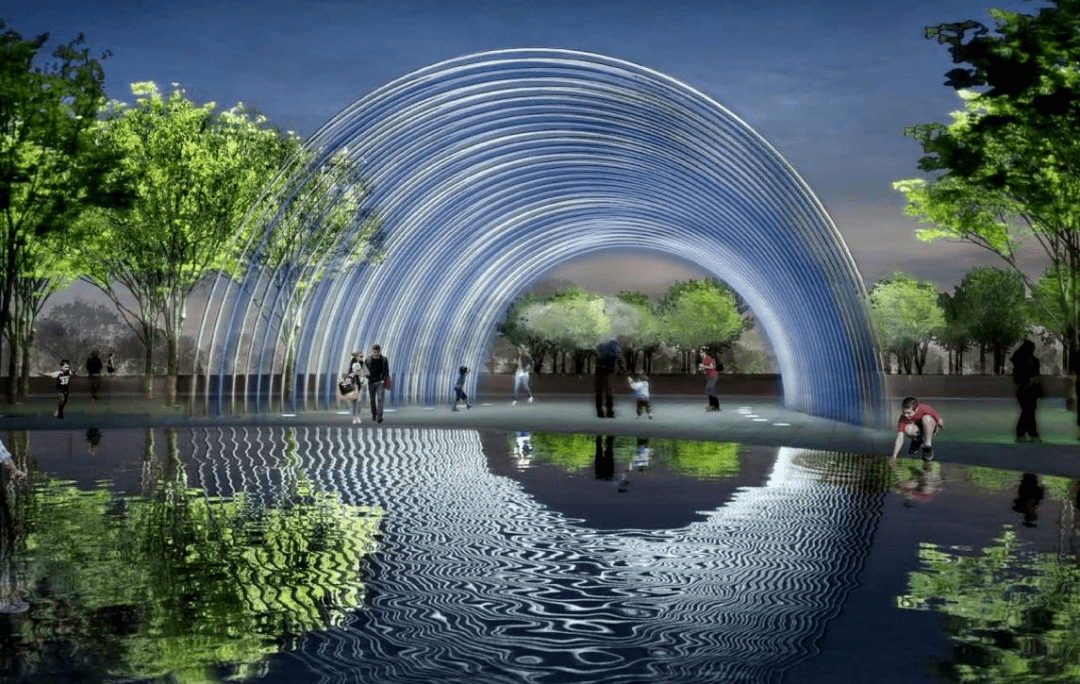 根据初步规划 购物中心的建筑幕墙 以“ 光”为媒 配合灯光、小品、水景 形成靓丽的无锡城市风景线