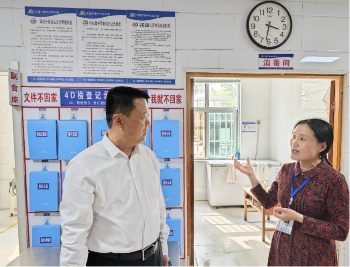 摘要:为全面落实食品安全工作管理机制,提升学校食品安全水平,保障广大师生餐饮质量和安全,2023年5月18日,莒南县副县长郑军同志带队到石莲子镇中心幼儿园督导检查校园食品安全工作,石莲子镇党委书记陈强同志陪同。 在听取了学校关于学校食堂管理情况的汇报后