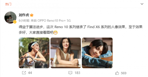 根据官方的描述,这次OPPO Reno10系列将将首次搭载超光影潜望长焦镜头,实现构图自由。同时,OPPO首席产品官刘作虎表示,“得益于算法进步,Reno10系列继承了Find X6系列的人像效果”,通过OPPO刘作虎的说法不难猜测出,Reno10系列在人像方面应该有很强的拍摄表现。