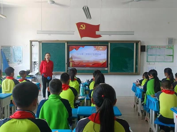 为推进“讲故事,学理论”活动进课堂、进头脑,落实立德树人根本任务,引导少先队员厚植爱党爱国情感,让红色种子生根发芽,让红色基因代代相传。沂南县高湖小学根据教体局安排部署,结合学校实际,通过少先队活动、主题班会、主题教育宣讲等方式,面向全体学生开展符合认知特点、灵活多样的宣传活动。