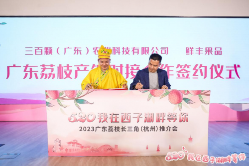 多方聚力:产销对接扩销路 本次活动邀请了国内近五十家优质采购商、广东荔枝种植大户、合作社、农场、加工企业等供应商参加,并聚集广东、浙江两省的强势宣传资源推介广东各主产区荔枝,打造了一场鲜活的产销对接会。 为赴这场杭州甜蜜之约,广东诚意满满,品鉴区的荔枝分别来自湛江、茂名等主产区,盼了一整年的鲜活荔枝堆成了一座座“小山”,“终于等来了广东荔枝”“果肉饱满,鲜甜多汁”......采购商们对广东荔枝赞不绝口,淘天集团食品生鲜经理书洋表示,“广东荔枝一上市在全国各地都很受欢迎,酸甜度和口感特别符合大部分人的口味,加上广东荔枝产业基础设施完备,品质优良,让我们可以放心采购。” “荔枝什么时候大量上市?”“可以通过什么渠道大量采购?”一系列咨询和订单接踵而来, 广东中荔农业集团有限公司负责人黎焯锋表示,杭州作为长江三角洲的中心城市,经济发达,消费市场广阔,在这次推介会和长三角的采购商达成了较好的合作意向,希望接下来的合作更上一层楼。 在推介会上,广东中荔农业集团有限公司、三百颗农业科技有限公司与果易得、鲜丰果品等多家采购商企业签订了战略合作协议,共同构建广东荔枝供货交易链条,加强广东荔枝的市场推广,积极推进荔枝省际合作,共同跑好2023年广东荔枝营销“第一棒”。