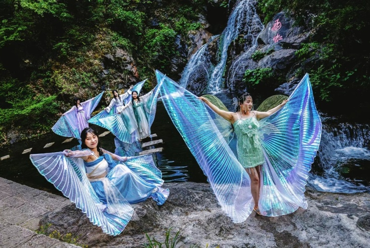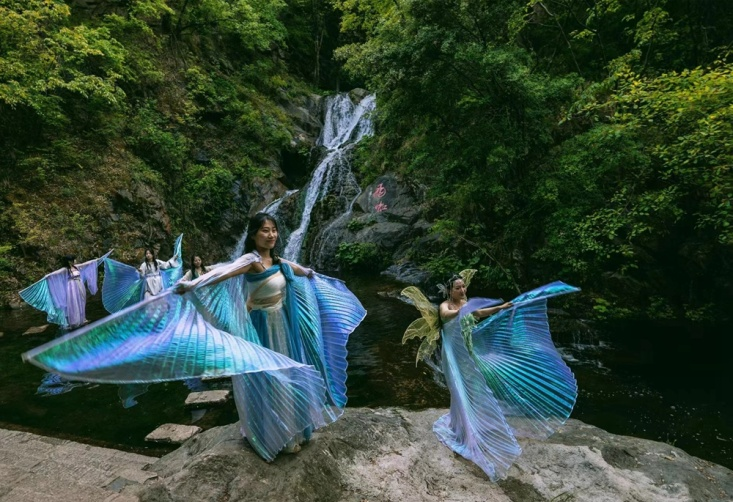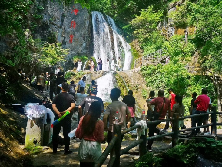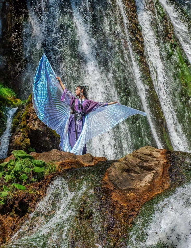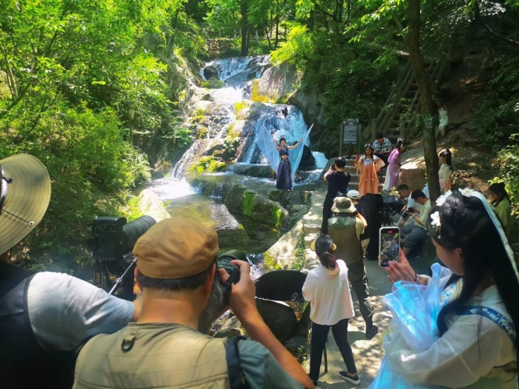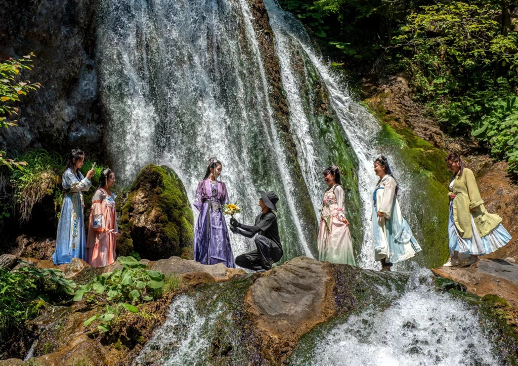 来自北京的丰先生说:“年轻人以这种‘穿越千年去告白’的形式表达对爱情的忠贞,既弘扬了传统文化,又升华了爱情,是一种正能量,值得褒奖。” 来自郑州的赵先生是一名摄影师,当天正在瀑布下拍摄,全程记录下了现场发生的故事。他说:“洛阳全城大穿越,汉服火爆出圈,重渡沟作为一个山水景区,境内小桥流水,茂林修竹,到底什么服装在这里拍照才美?今天宋先生给了一个最好的诠释,洛阳的汉服,老君山的斗篷,重渡沟的‘美人蝶’。”(赵树岭 封君 乔小乔) |