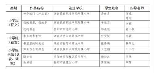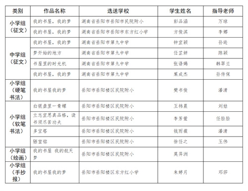2022年岳阳市“我的书屋·我的梦”农村少年儿童阅读实践活动优秀作品作者和指导教师名单