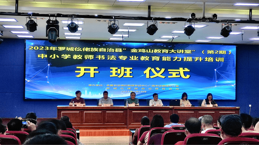 5月18日,由全国书法培训教师考试中心广西考试管理办公室联合罗城仫佬族自治县教育局,在罗城县青少年活动中心一楼会议室举办“2023年罗城仫佬族自治县金鸡山教育大讲堂(第二期)中小学教师书法专业教育能力提升培训公益活动”。教育局教师培训梁素娟主任主持,县教育局副局长李丹华做开班致辞;县文联主席银联健参加了开班仪式。 罗城仫佬族自治县教育局副局长李丹华介绍:汉字和以汉字为载体的中国书法是中华民族的文化瑰宝,是人类文明的宝贵财富。书法教育对培养学生的书写能力、审美能力和文化品质具有重要作用。全国书法培训教师考试中心广西考试管理办公室,联合我县教育局开展书法教师公益活动,旨在帮助我县中小学书法教师提升专业素养和教学水平。