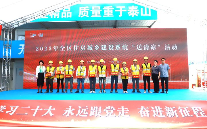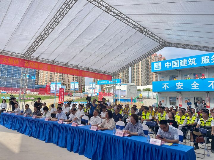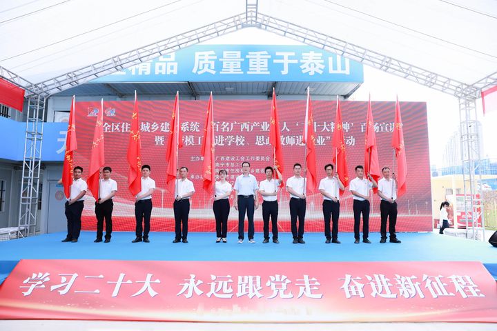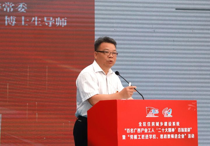 5月26日,由广西壮族自治区总工会、广西壮族自治区教育厅、广西建设工会工作委员会、南宁市总工会主办,南宁市建设工会、南宁威宁房地产开发集团有限公司、中建八局广西分公司承办的2023年“百名广西产业工人党的二十大精神百场宣讲”暨“劳模工匠进学校、思政教师进企业”活动的首场专场宣讲活动在中建八局广西分公司南宁市第九中学高中部新校区项目举行。