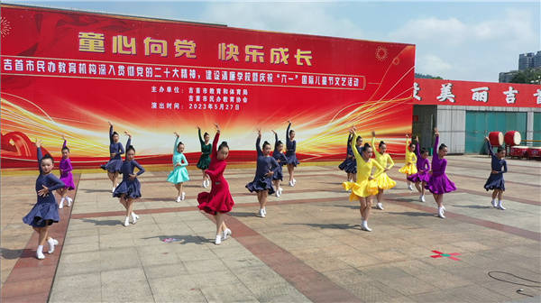 5月27日,由吉首市教育和体育局主办、吉首市民办教育协会承办的“童心向党 快乐成长”庆“六一”文艺汇演暨义卖活动在该市人民广场举行。吉首市教体局党委书记、局长张俊生致辞,局党委班子成员及股室负责人参加。该市近60所民办小学、民办幼儿园及培训机构的孩子们载歌载舞共庆“六一”儿童节,向社会奉献爱心。