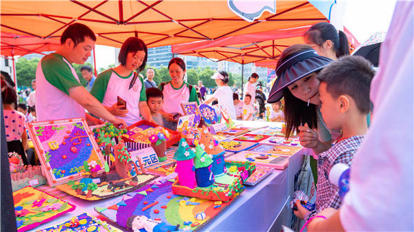 活动以欢快的开场鼓《中国龙》 拉开帷幕,近20所民办教育机构的孩子们身着绚丽的服饰,纷纷登台一展风采,表演了精心排练的文艺节目。舞蹈《党的阳光照我成长》《红星闪耀万泉河》,朗诵《歌颂祖国》,表达了孩子们从小热爱中国共产党,热爱伟大祖国的真挚情感;鼓舞《精忠报国》、古筝合奏《爱我中华》、合奏《国际歌》再现革命年代的峥嵘岁月和仁人志士坚定的斗争精神;舞蹈《孩子的天空》《乖乖的吉韵娃》、合奏《小宝贝》、朗诵《稻田里的中国梦》展示了孩子们健康成长的良好面貌和对未来美好生活的向往。孩子们全身心地投入,精彩纷呈的演出,赢得了老师家长和现场观众的阵阵掌声。同时,义卖活动火热进行。孩子们拿出自己精心制作的手工艺品、书画品及美味食品现场义卖。这些作品构思奇妙、富有意趣而又精美有型,吸引市民纷纷驻足欣赏、品评、购买。该市民办教育协会负责人陈永梅介绍,当天义卖所得款项将全部捐助给农村小学、幼儿园的孩子们,助力城乡教育资源均衡发展,大家手拉手拉欢度儿童节,一道健康快乐成长。