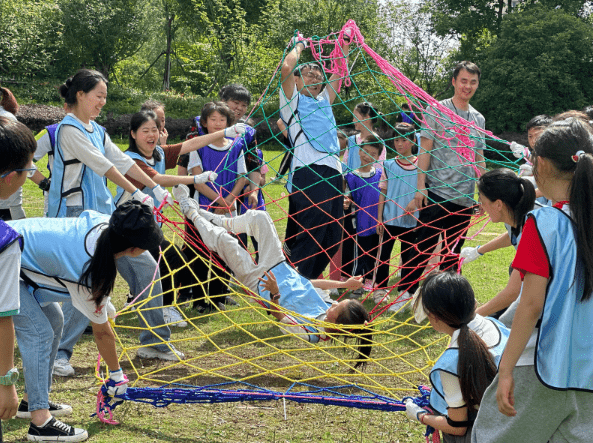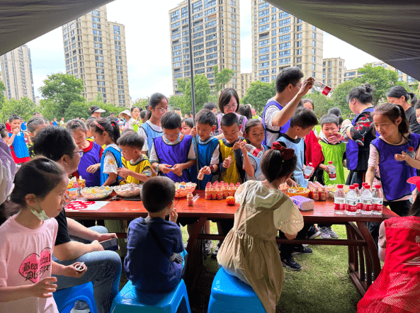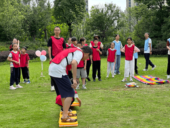 本次亲子趣味运动会共分为两个环节,团体赛和个人赛。亲子在教练的带领下,分组、热身、开始比赛。每一位亲子家庭在同舟共济、"珠行"万里、飞跃"泸定桥"、"车轮"滚滚等比赛项目中都发挥了自己的运动天赋,感受来自运动带来的魅力。虽然大家都头顶烈日,但每一个人脸上都洋溢着幸福的笑容。环顾活动现场,可以看到不少小朋友亲切地拉着爸爸妈妈的手和爸爸妈妈分享着自己的喜悦,爸爸妈妈们也认真地倾听小朋友们的开心的“碎碎念”,现场弥漫着一股“双向奔赴”的爱意。