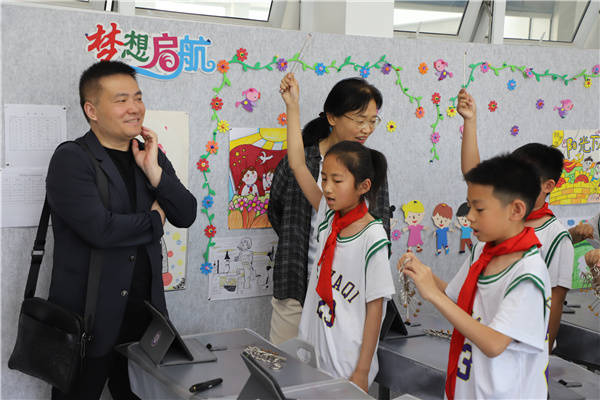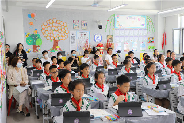 【参观校园】 课后,参与本次活动的专家及同仁们参观了充满灵性的“漫学园”。孩子们的诵读展示赢得了大家的阵阵掌声;学校的空间文化、智慧生态园也得到了专家们的肯定。智慧书法、智慧操场(体育)、智慧英语、AI智能机器人等智慧课堂,全方位展示了我校人工智能技术与教育教学的深度融合,让专家们深刻体会到了我校打造的“浪漫且有质量”的教育。
