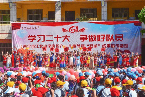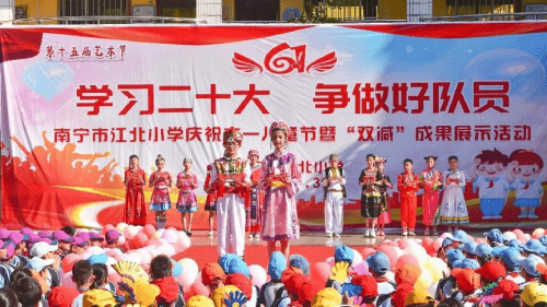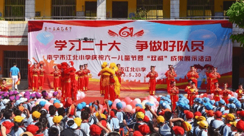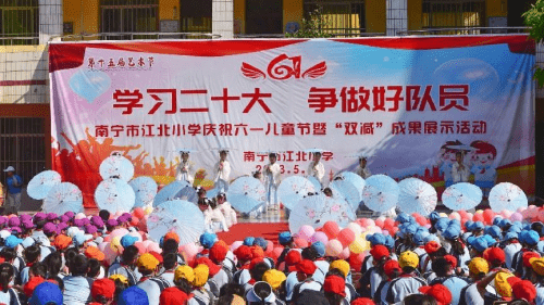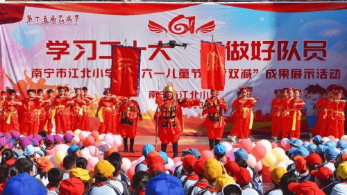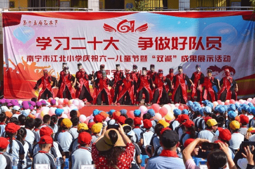 为喜迎六一国际儿童节,让广大儿童在欢快的节目氛围中展现自我,争做新时代好队员,5月30日上午,南宁市江北小学开展庆祝“六一”儿童节暨“双减”成果展示活动。活动邀请到中国网上电视台绿色频道总监王杰清、壮族扁担舞国家级传承人覃素芳、新阳派出所警官陆启焰、北大南社区委员何春萍参加。