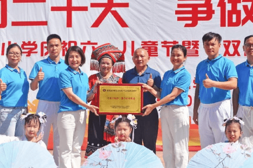 “你是我天边最美的云彩,让我用心把你留下来……”欢快的音乐《最炫民族风》拉开活动序幕,各年级的小演员身穿独具特色的少数民族服装、踏着欢快的音乐出场,展现56个民族的风采和魅力。活动中,举行了非遗舞蹈进校园授扁仪式,壮族扁担舞国家级传承人覃素芳亲自授牌,并现场教授打扁担,整齐的扁担敲打声响彻江北校园,授牌仪式为江北小学搭建了传统文化素养提升的平台,促进非遗文化进一步推广与传承。