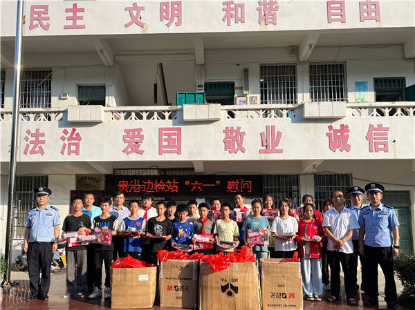 5月29日,在“六一” 国际儿童节到来之际,贵港出入境边防检查站组织民警到该站支教民警所在小学——三江县独峒镇知了小学开展“情暖童心 爱撒知了”主题慰问活动。