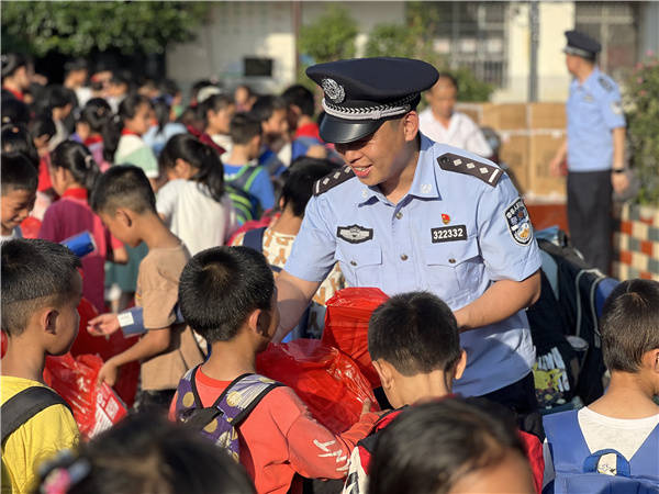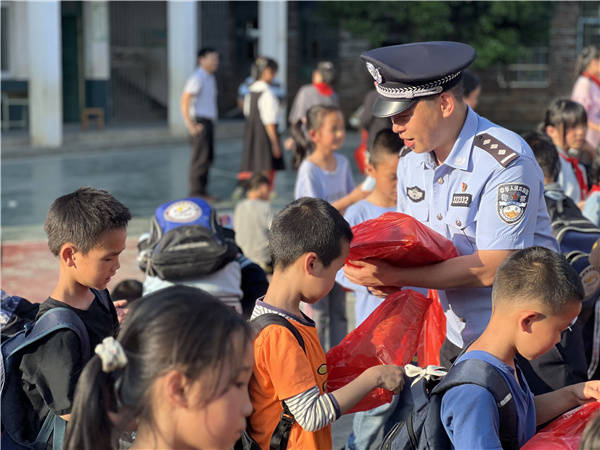 活动中,该站民警为知了小学的学生带去了练习本、文具、小黑板等学习用品,勉励在场同学要珍惜美好年华,用自己的智慧改变命运,立志成才、走出大山,培养优良品德,勤奋学习知识,争取成为有知识、有能力的时代新人,将来报效祖国,建设美丽家乡。浓浓的爱心溢满校园,充分体现了民警们对少年儿童的温暖关怀,对乡村振兴工作的大力支持。