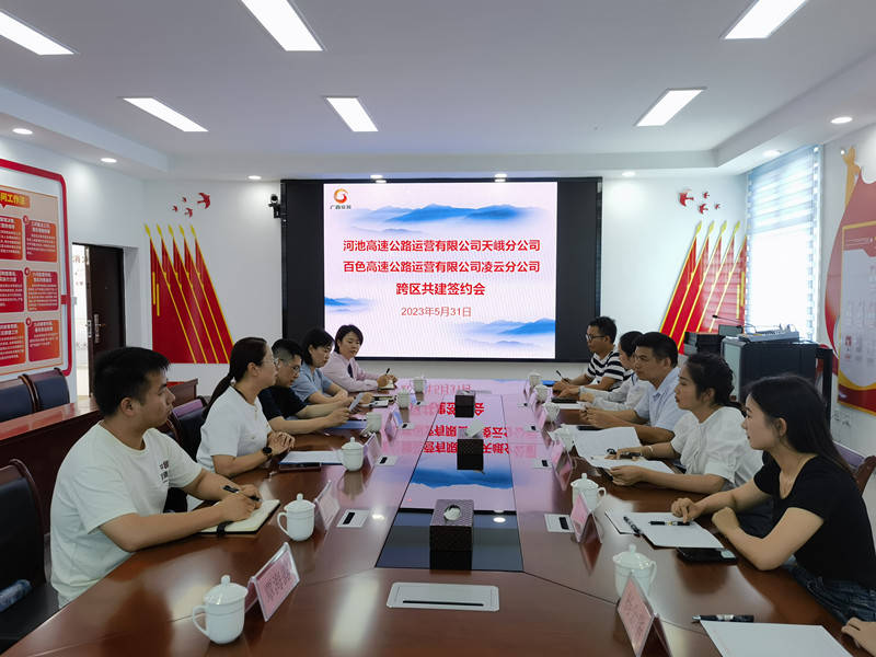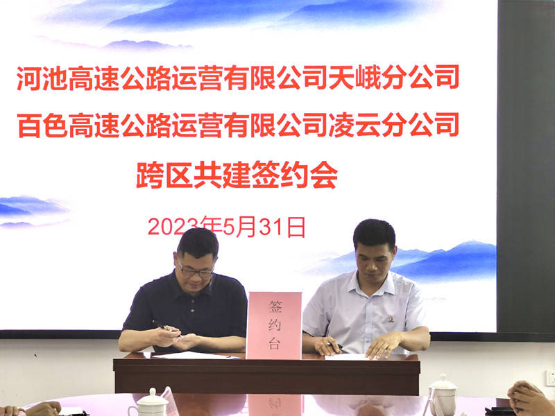 ——天峨分公司与百色公司凌云分公司签订“跨区共建”合作协议 5月31日,河池高速公路运营有限公司天峨分公司(简称天峨分公司)与百色高速公路运营有限公司凌云分公司(简称凌云分公司)举行“跨区共建”合作协议,旨在以地方优质旅游资源和畅达便捷的高速路网为基础,着力提升文明服务水平,进一步满足人民美好交通出行需求。