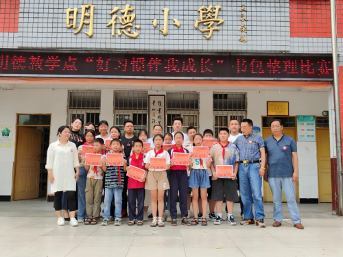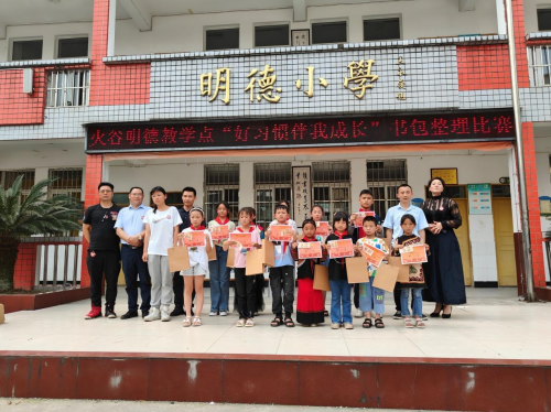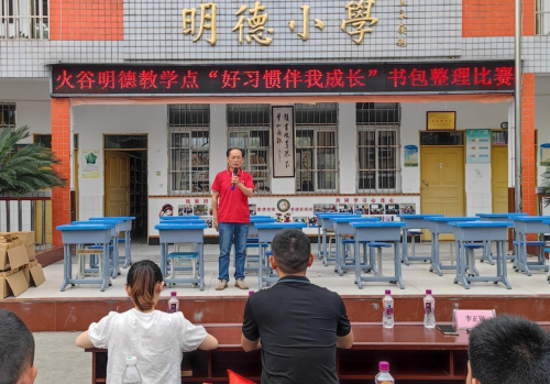 31日上午10时40分,沐川县关工委执行主任李正银,县委组织部关工股长夏熙,四川省人大常委会派驻干部、利店镇党委副书记杨凡,镇党委委员刘飞,沐川移动公司利店支局长朱洁玉,成都善子涵育爱心志愿服务队长姚康明和志愿者张祥容、马广银、查永邱、卢林、姜锡林、查懿轩及火谷明德小学校长、关工委主任温友强与全校120名师生,在学校操场参加火谷明德小学 “好习惯伴我成长”书包整理比赛活动。 整个书包整理比赛活动,由县关工委执行主任李正银宣布开始,一至六年级每个班推荐19名优胜者,以班为单位轮流参赛,每班评出一等奖2名,二等奖4名,三等奖6名。全校114名参赛者通过40分钟的比赛,六年级刘筱等72名优胜者分别获一、二、三等奖。同时,对肖雪霖、黄微、祝方容、宁小慧、尹艮友、彭凤娟等优秀教育工作者和蒋怡帆等13名参加公益活动的优秀青少年志愿者颁了奖。火谷明德小学向四川山河玖商贸有限公司、冠德堂医疗技术集团赠送“捐资助学·大爱无疆”的锦旗。(李正银)