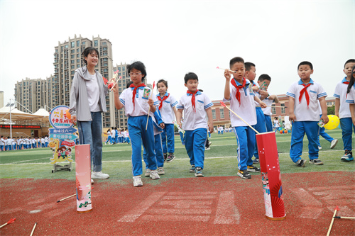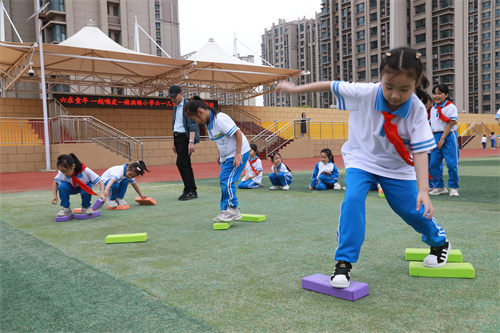 一个个“足球小将”“投壶高手”正在大显身手,在这小小天地,他们跑啊,跳啊,好不热闹。热火朝天的闯关游戏,恣意烂漫的小小少年,尽情享受这久违的喜悦时光。
