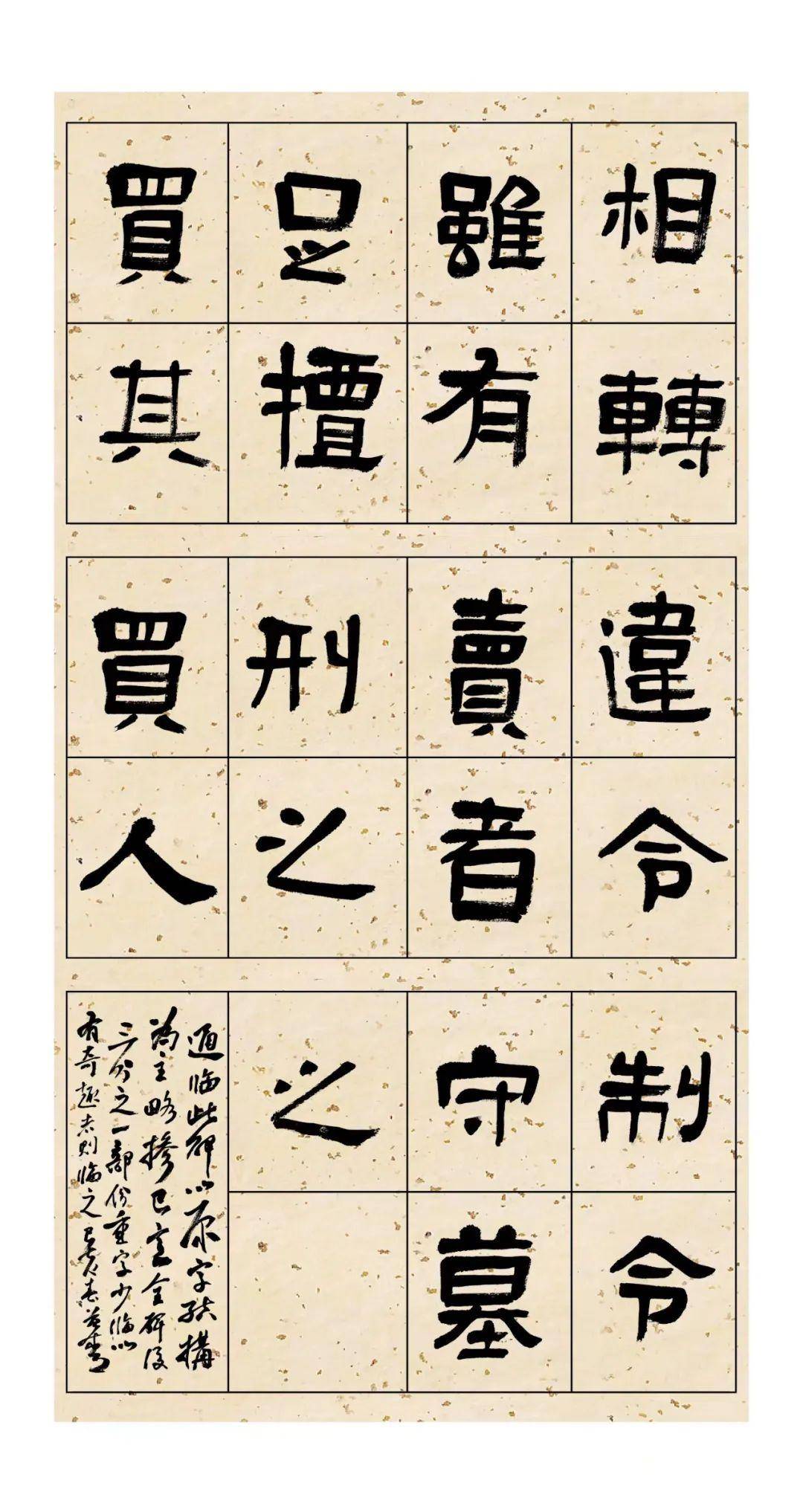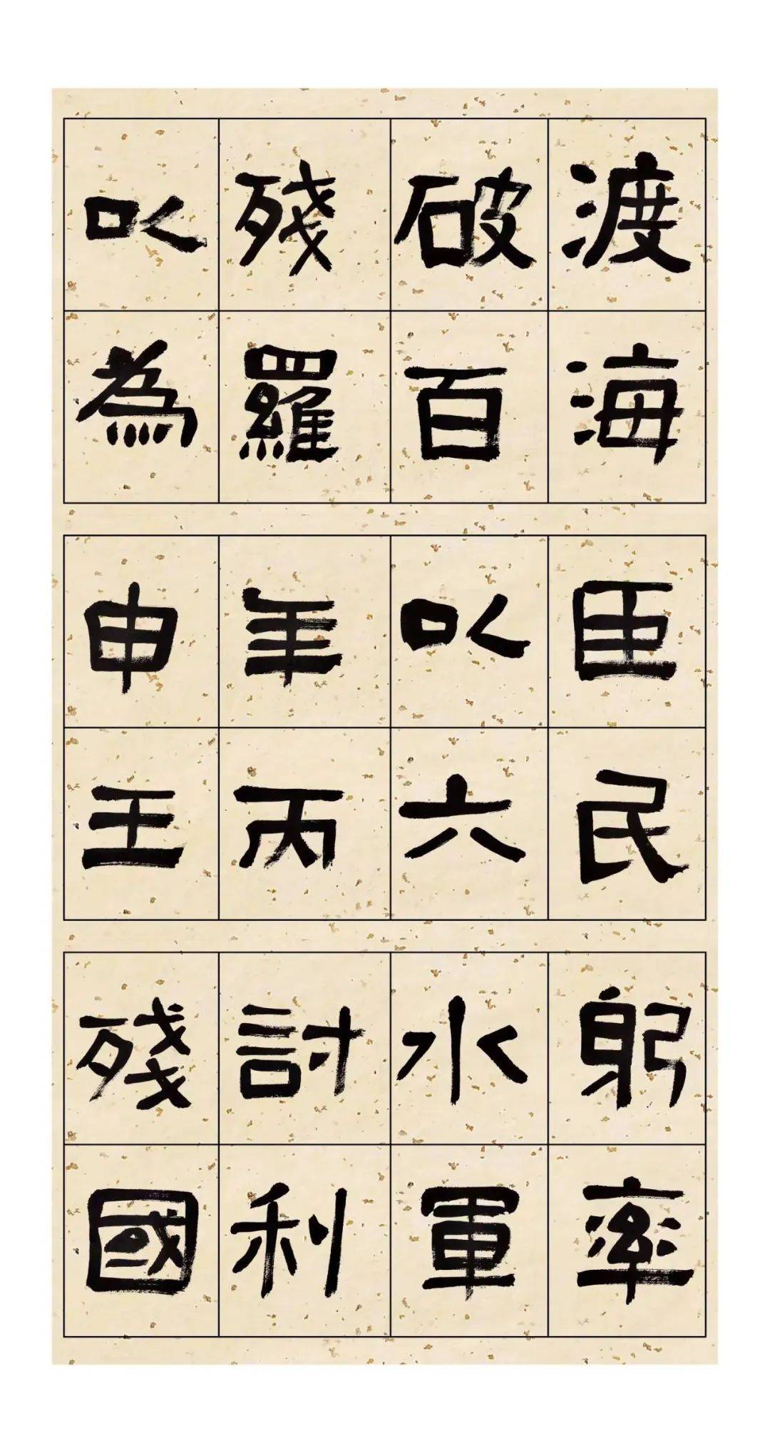天真烂漫的《好大王碑》 翻开《好大王碑》,每个人都会眼前一亮,生出一种怪离的感觉:不同的字,有像一个调皮的小娃娃,有像一尊“闭目养神”的木雕,还有像憨态可掬的村妇,更有像笑傲江湖的武者……字形古拙、质朴,憨憨的,“方头方脑,笨手笨脚”,一派浪漫、自然!此碑,既没有蚕头燕尾的修饰,也没有书写之前的刻意安排,浑然似丐帮的长老,貌不惊人却功力深厚;又似威然端坐的佛陀,在淡定中透出灵光,让人爱不释手。 百度资料显示,该碑全称《高句丽好大王碑》,又称《广开土王境平安好大王碑》,是高句丽王朝的长寿王为铭记其父永乐太王的功绩而立。碑文记叙了永乐大王当政时讨稗丽、攻百济、救新罗,伐夫余、败倭寇的赫赫战功。该碑立于好太王陵寝东侧。因永乐大王死后谥为“国冈上广开土境平安好太王”,故又称其为《好太王碑》。该碑是我国现存的最大的石碑之一。为述说之便,以下均称《好大王碑》。 《好大王碑》不仅在我国历史文献研究整理方面有重大意义,而且在书法学习和研究领域具备特殊的地位。据《集安县志》记载:“此碑名家考证极多。惟因碑身高大,当时未筑碑亭,加上碑石粗劣,苔藓封蚀,剥削模糊不辨之字好事者以意补之,文字或减,故难以窥见原貌。后苔藓尽去,光绪中叶,拓者除残削减没者外,字迹清晰,好古者视为珍品。今者逐年剥削,不可辨认者又多矣。” 书法发展至东晋,王谢楷行草早已一统大半天下,北方中国的少数民族政权各霸一方,书法探索在缓慢推进,到《好大王碑》被立起的414年,距离汉代隶书的辉煌时代已过去240多年,为何会有《好大王碑》这一奇碑“从天而降”、震惊寰宇?有一点原因似乎有些可能,那就是在那个相对封闭的白山黑水之间,道路隔阻,交通不畅,远离中原,加之少数民族政权对文化学习的粗放,导致中原的先进文化特别是书法新体的传播出现了“滞后效应”,没有对其及时实现覆盖。然而,却也因此幸运地催育了这块神碑的诞生。 纵观此碑,不难发现,其线条貌似“单纯”无奇,实则力贯其中,深藏不露,深谙“中庸”之道。清代邹方锷《论书十则》云:“夫作字,以用笔为尚,用笔之病:曰呆、曰弱、曰率、曰滞、曰俗;其善者曰劲、曰灵、曰瘦、曰净、曰雅。”无疑,《好大王碑》之用笔劲挺,线条瘦净,无不贴合雅、灵之境也。由于原选碑石的材质粗劣,苔藓长期封蚀,《好大王碑》的线条,从“外观”上看,不重东汉隶书头尾的修饰,表现出来的是粗旷、浑濛之貌,似呈“万虫啮木”之态,线条表面凹凸不平,又似“屋漏痕”的边缘,临习该碑时选择偏生纸、偏软毫笔、辅之迟涩行笔应易表现这种“线貌”;再从线条的内质上看,刚柔有度、劲挺内敛的用笔成为其“独家”特点,入笔尖圆互用、收笔沉着干脆凸显马背民族浓郁的直率和刚强,线条在平式、直式为主的方向上显露出机智、可爱的另一面。 清代康有为《广艺舟双楫》云:“书法之妙,全在运笔,该举其要,尽于方圆。操纵极熟,自有巧妙。方用顿笔,圆用提笔。提笔中含,顿笔外拓。中含者浑劲,外拓者雄强。中含者,篆之法也,外拓者,隶法也。提笔婉而通,顿笔精而密,圆笔萧散超逸,方笔凝整沉着。提则筋劲,顿则血融,圆则用抽,方则用挈。圆笔使转用提,而以顿挫出之。方笔使转用顿,而以提挈出之。圆笔用绞,方笔用翻,圆笔不绞则痿,方笔不翻则滞。圆笔出以险,则得劲。方笔出以颇,则得骏。提笔如游丝袅空,顿笔如狮狻蹲地。妙处在方圆并用,不方不圆,亦方亦圆,或体方而用圆,或用方而体圆,或笔方而章法圆,神而明之,在乎其人矣。”。康南海此段书论,恰好描述了《好大王碑》用笔的诸多特点,“妙处在方圆并用,不方不圆,亦方亦圆,或体方而用圆,或用方而体圆……”亦看得出,康公在努力参悟“书法之妙,尽在运笔,而运笔之要,尽于方圆”之道,进之,可得“操纵极熟,自有巧妙”之理。笔者窃以为,研习此碑,若能对康公此述多加揣度并践之,对运笔之法应有所得矣!概言之,临习《好大王碑》之用笔,应紧扣三个关键词:一曰中锋。此碑几无偏侧锋,如同小篆,或隶中石门等;二曰藏露。主要是说起收笔之式,笔画有藏有露,不可均藏;三曰控速。即要把握好用笔的力度,切忌过快,行笔中需把“涩”的味道表现出来,追求“屋漏痕”之古拙的趣味,切忌“平铺直叙”,尤在折笔处,需显“折钗股”、或微妙“焊接”的过渡,表现出现高古的气息。 在结字方面,应多多体察《好大王碑》与传统汉碑之异处,品味其奇拙之态。品察、分析此碑单字结构,窃以为:“势奇、体古、态拙”似可概括之: 一曰“势奇”。此碑单字,可谓一字一势,或一字多势,参差有度,各显风骚。明代费瀛《大书长语》云:“作大字如大匠作室然,先须经营位置。匾有横竖,体裁不同,字有疏密,形势亦异。规画间架,穿插得宜,胸中有成字,而后下笔,则稳妥耐看”。细观此碑,有的字写成了“上大下小”,似孩童打伞,险中求稳,又像旋转的陀螺,着一点而不倒,比如“家”“是”“墓”“民”等字;有的字被稳稳地安排在一个、又一个“上小下大”的梯形里,可左右扭动却上下“动弹不得”,“看”“卖”“言”等字独具此味;“任尔东西南北风、我自岿然不动”的有“国”“有”“令”“来”等字,属于“两耳不闻窗外事”的寺中老僧,正襟危坐待问禅;左右结构的字,有的左小右大、有的让右放左
