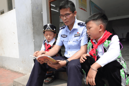 民警与少数民族儿童共同学习。蒙正欢 摄