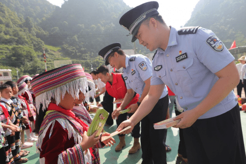 民警与少数民族儿童进行互动。蒙正欢 摄