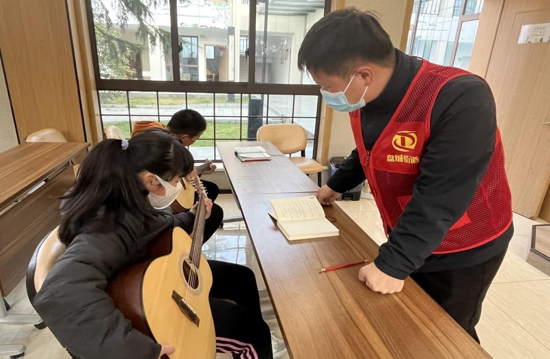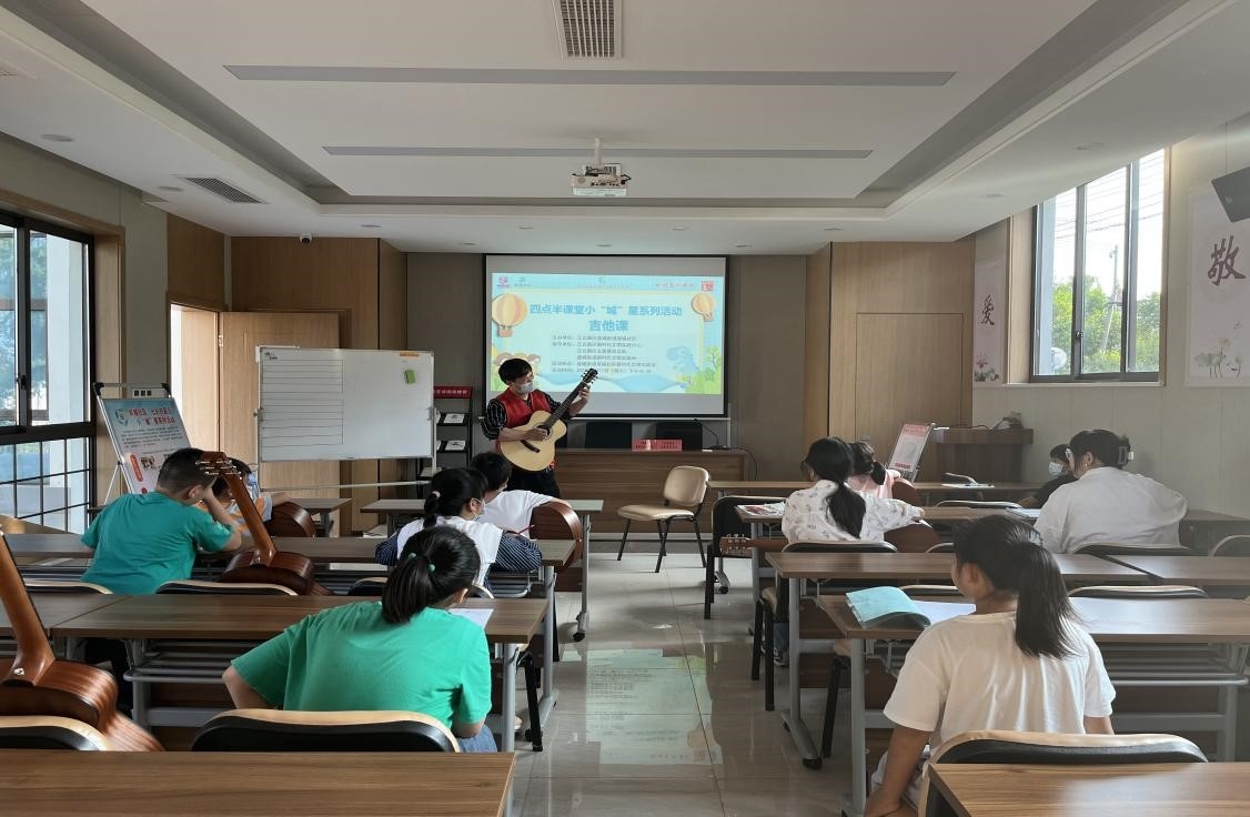 拓展兴趣,筑梦多彩童年。结合近年来的“双减”政策,青少年课余文化需求显著增加,为此,四点半课堂立足党群服务中心,积极转型,发挥共建单位大学生志愿者、辖区有文艺特长的党员、团员志愿者作用,开展小“城”星系列活动,提供吉他、美术、益智等兴趣课堂,积极发掘孩子们的潜在优势,帮助他们养成良好兴趣和习惯,促进青少年全面发展。