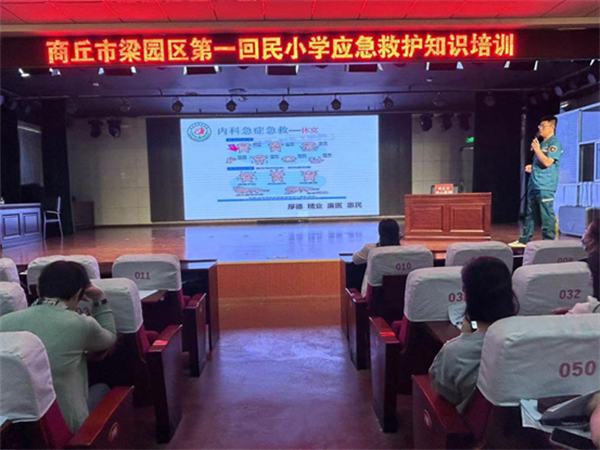为增强学校师生应对突发事件和意外伤害的意识,普及应急救护知识和技能,提高全体师生自救、互救能力,掌握急救技能。6月2日,商丘市梁园区第一回民小学邀请商丘中心医院急诊科医生走进校园,带来一场别开生面的应急救护知识讲座培训。