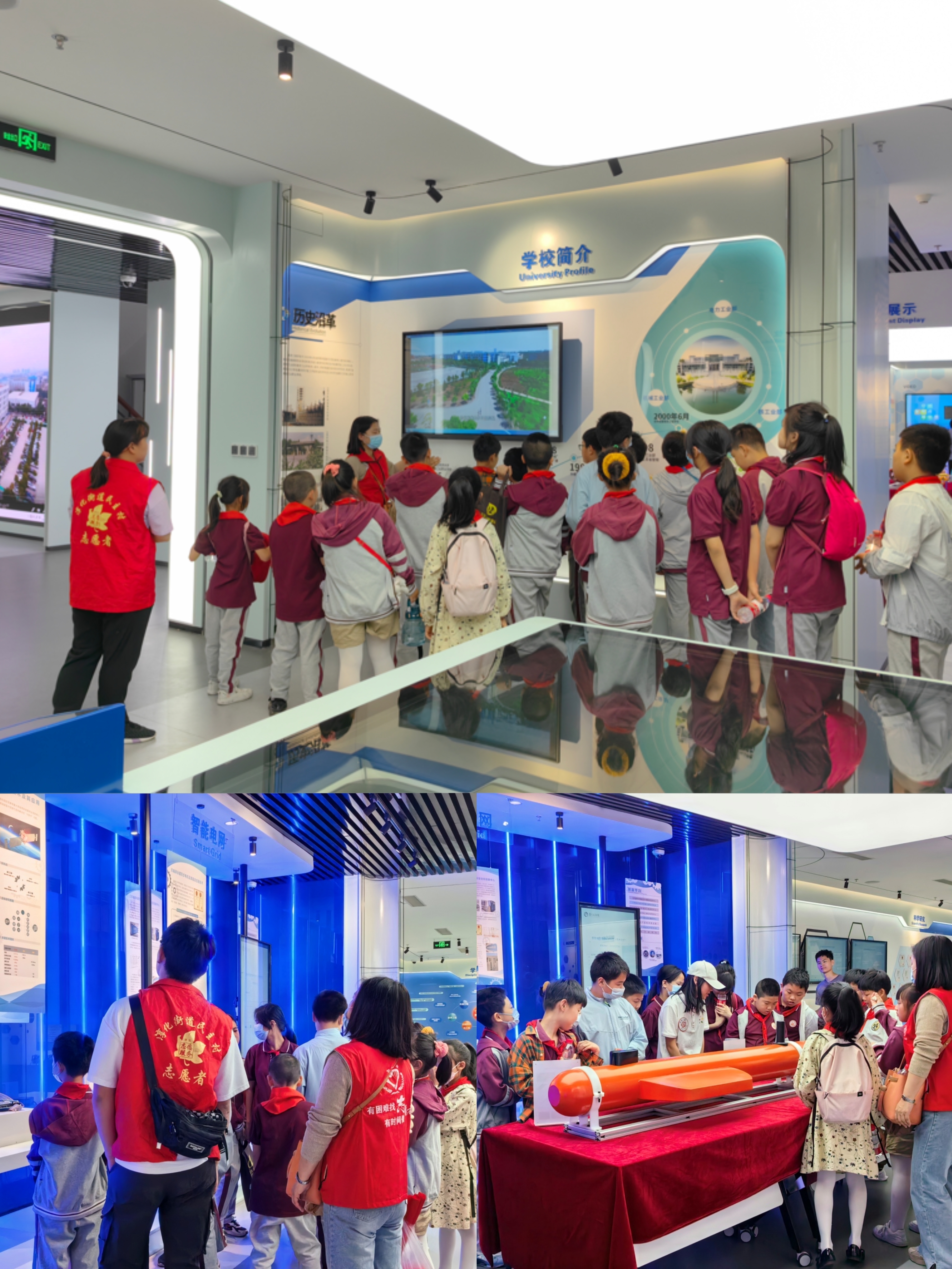 活动当天,大家乘坐大巴车来到南京工程学院,志愿者老师简短介绍了此次活动的目的及活动流程。同时,带领孩子们游览参观南京工程学院科创中心、校史馆、图书馆、体育馆等校园标志建筑及场所,并给孩子们模拟大学上课,介绍了学校的校景校史,加深大家的印象和理解。