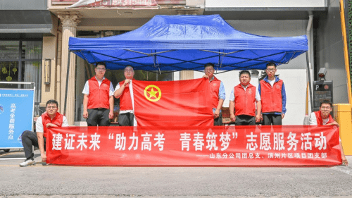 ——山东分公司组织开展“建证未来 ‘筑’力高考·梦想启航”志愿服务活动 十年磨一剑,今日露锋芒。6月7日,2023年高考拉开帷幕,一建山东分公司党总支、团总支、山东分公司工会与中海城投党支部开展“建证未来·‘筑’力高考·梦想启航”志愿服务联建活动,为学子送去关怀温暖。 活动共设2个志愿服务点,6名党员、18名青年员工顶着35度的烈日高温,临时组建了一支“党员先锋队”和一支“青年突击队”,共同成立“助力高考志愿队”。分别在北镇中学、惠民三中门前设立了“助力高考爱心服务站”,共准备了2100瓶矿泉水、480支藿香正气水、1000把扇子、100瓶清凉油、400套文具、2个医药箱等,同时为高考考生及家长提供6辆“爱心专车”送考服务,一站式解决考生们的“燃眉之急”和不时之需。为考生保驾护航,助力考生圆梦。