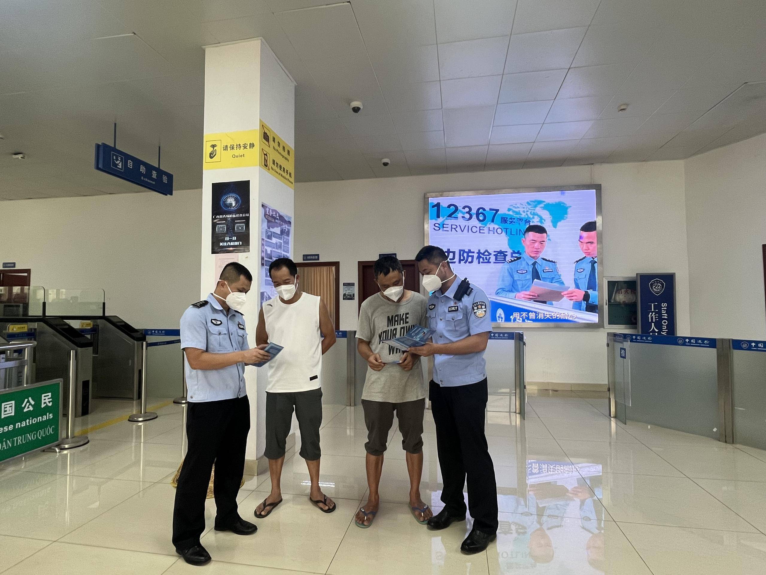 该站执勤民警利用执勤间隙向口岸联检单位向口岸联检单位、涉外企业、口岸从业人员、出入境人员等服务对象详细介绍了国家移民管理机“12367服务平台”的建设情况及平台开通2年以来取得的成效,让他们进一步了解平台24小时自助申报、预约查询、在线咨询服务等一站式服务功能。 “以前我们在涉及办理证件、换证等许多出入境问题时,也不知道去找谁、联系谁,现在有了12367服务平台,有什么问题可以直接打电话过去,客服人员都会积极解答,解决了我们不懂和不知道找谁的难题。”口岸从业人员农某说到。 下步,该站还将继续加大宣传推介活动,让12367服务平台能够深入民心,让百姓有需要时能想得起、用得到、能解决的便民措施,切实发挥服务效能,充分展示边检新形象新作为。 作者:陈振万 文宗鹏 |