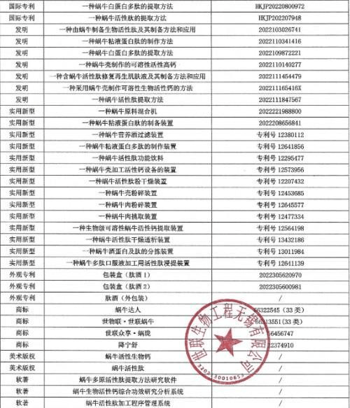 世联生物工程无锡有限公司蜗牛活性肽获得【二项国际发明专利】,六项【国家发明专利】,十六项【实用新型 专利】,六个【产品商标】,荣获【知识产权体系证】,荣获【生物活性肽原料奖】【三项活性肽品牌证书】【一项产品 认证及企业认证】【蜗牛活性肽版权及软著】【质量体系认证】【食品安全体系认证】,荣获【食品行业典范企业】。 |