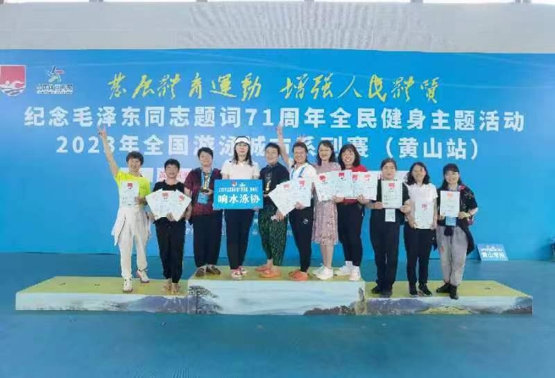 6月12日,江苏响水县游泳协会19名游泳爱好者,千里出征,“泳”战黄山,凯旋归来。他们在不久前黄山举行的2023年全国游泳城市系列赛上,囊获奖牌37枚,其中金牌5枚、银牌6枚、铜牌13枚。总团体积分傲居全国24个代表队的前列,位居第三名,女子团体总分位居第二名。 响水县游泳协会成立于2015年12月,共有会员100多名。