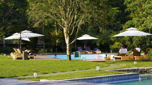 你以为这就够了吗?不,“谷雨山居”是夏日纳凉、放松心情、享受自我的好去处。有会务、茶室、音乐酒吧、健身房、棋牌、露天儿童嬉水、泳池、山野徒步……约上好友,三三两两,坐在草坪、景观平台、凉亭或遮阳伞下的躺椅中,品一壶清茶,享一缕清凉的山风,在森林氧吧之中尽情地欣赏大自然美景。