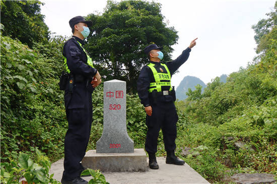 图为罗冠东(左)在边境开展巡逻踏查(滕才全 摄) 2022年3月,罗冠东带队前往边境对一起组织运送他人偷越国(边)境案的重要犯罪嫌疑人陆某进行抓捕。看到警察后,陆某拼命逃脱,罗冠东紧追不舍。 眼见就要将陆某绳之以法,不料他竟从路旁一处3米多高的斜坡纵身跳下,企图从荆棘密布的草丛中逃脱。
