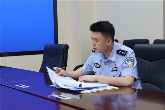 图为罗冠东在加班整理案件材料(腾才全 摄) 类似电影的一幕真实出现在眼前,罗冠东没有丝毫犹豫,纵身一跃而下,追上陆某将其摁倒在地,以迅雷不及掩耳之势从腰间掏出手铐将其控制。 抓捕结束,罗冠东才发现自己的小腿被尖锐的石头划伤,鲜血一直顺着伤口往外渗。他找来急救包进行了简单包扎,又继续投入到案件后续办理中。