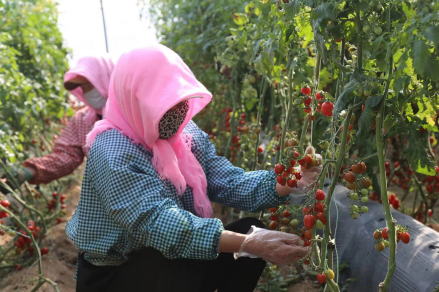 通过“三个一”工作模式,多方合力同频共振,2022年,红川村集体经济收入超百万元。村里引进山东冲腾农业科技发展有限公司种植小番茄,形成“党支部+企业+村集体+劳务+农户”的联农带农惠农机制,年总产量1700余吨,每年给村集体经济分红45万元,带动务工收入超800万元。同时,由党支部牵头成立肉牛养殖专业合作社,采取“党支部+合作社+金融机构+基地+农户”的联农带农惠农机制,每年为村集体分红8万元, 77户社员收益户均增加5200元。