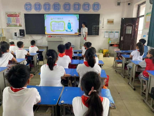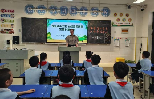 升旗仪式后,各班召开了“我们的节日--端午节”主题班会。同学们积极分享自己了解的端午节知识,讲述屈原爱国故事及诗歌创作背景,共赏、共学小组合作中搜集到的相关古诗,介绍节日习俗,气氛热烈。