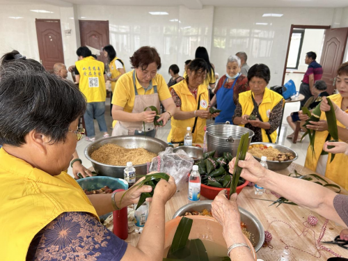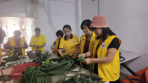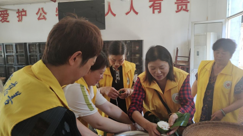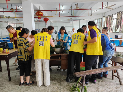 6月19日上午,市区分队来到老年公寓,和70位老人一起包粽子煮鸡蛋,并将煮好的粽子和鸡蛋用红绳编织好送给了老人们,现场一片欢声笑语;