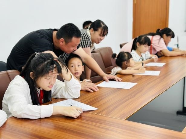 “如果我的爸爸是个粽子,我觉得他是豆沙馅儿的,因为他很宠溺我!”“我觉得我爸爸是八宝粽,因为他的生活很丰富!”活动伊始,孩子们互相分享起对爸爸的想象,通过把爸爸比作不同口味的粽子来表达对父亲的爱意。紧接着,孩子们收到了一份“爱的小测试”,考一考大家对父亲的了解程度。在填写完成后,孩子们都与身边的父亲一一进行了深入交流,此环节使亲子家庭关系更加紧密,也为孩子们树立了正确、健康的家庭观。