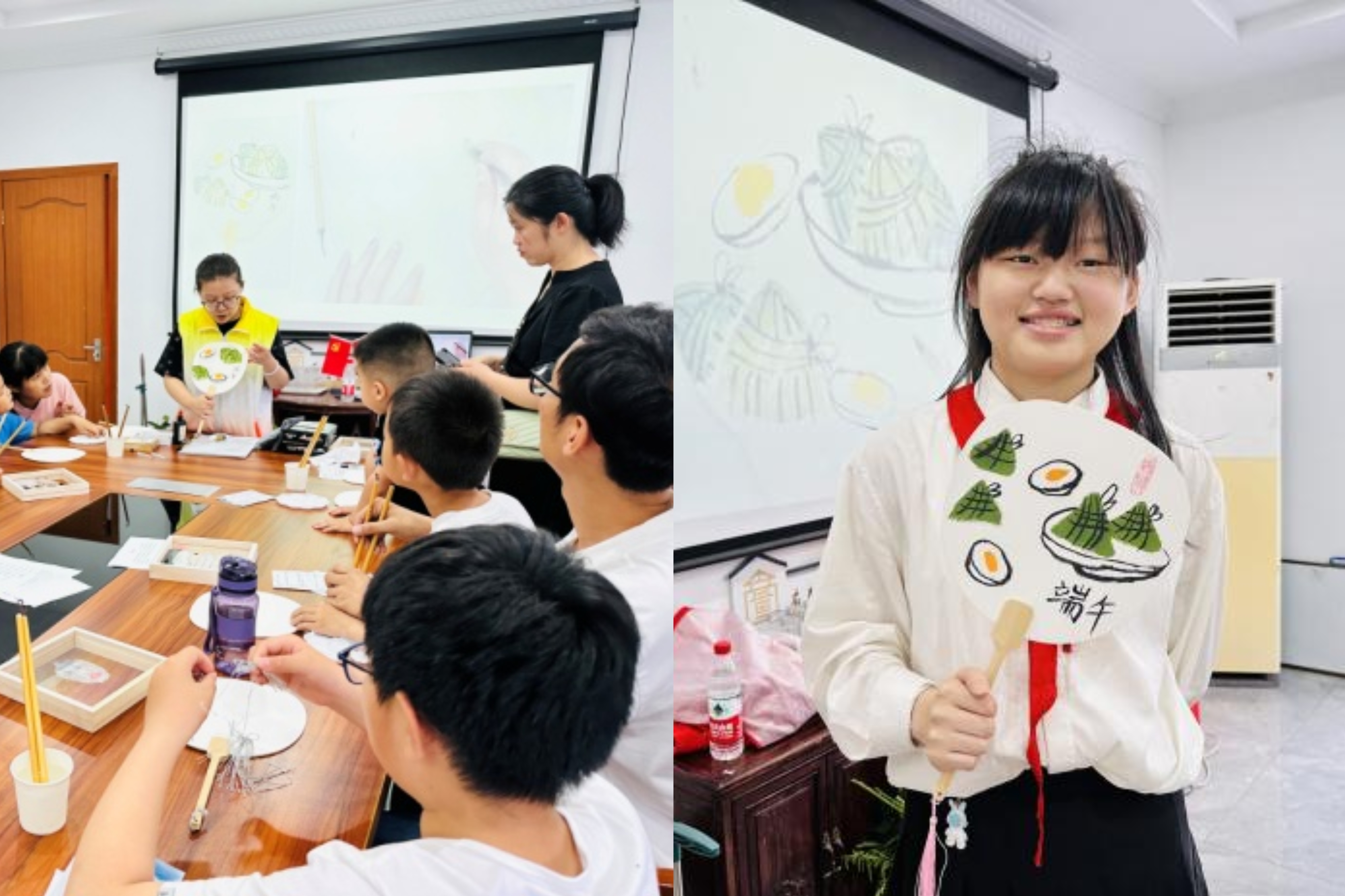 活动最后,大家一起进行了端午节团扇的绘制,孩子们用画笔创作粽子与鸭蛋,一把把色彩丰富的团扇寄托着端午祝福,也展现了孩子们的纯真、美好。