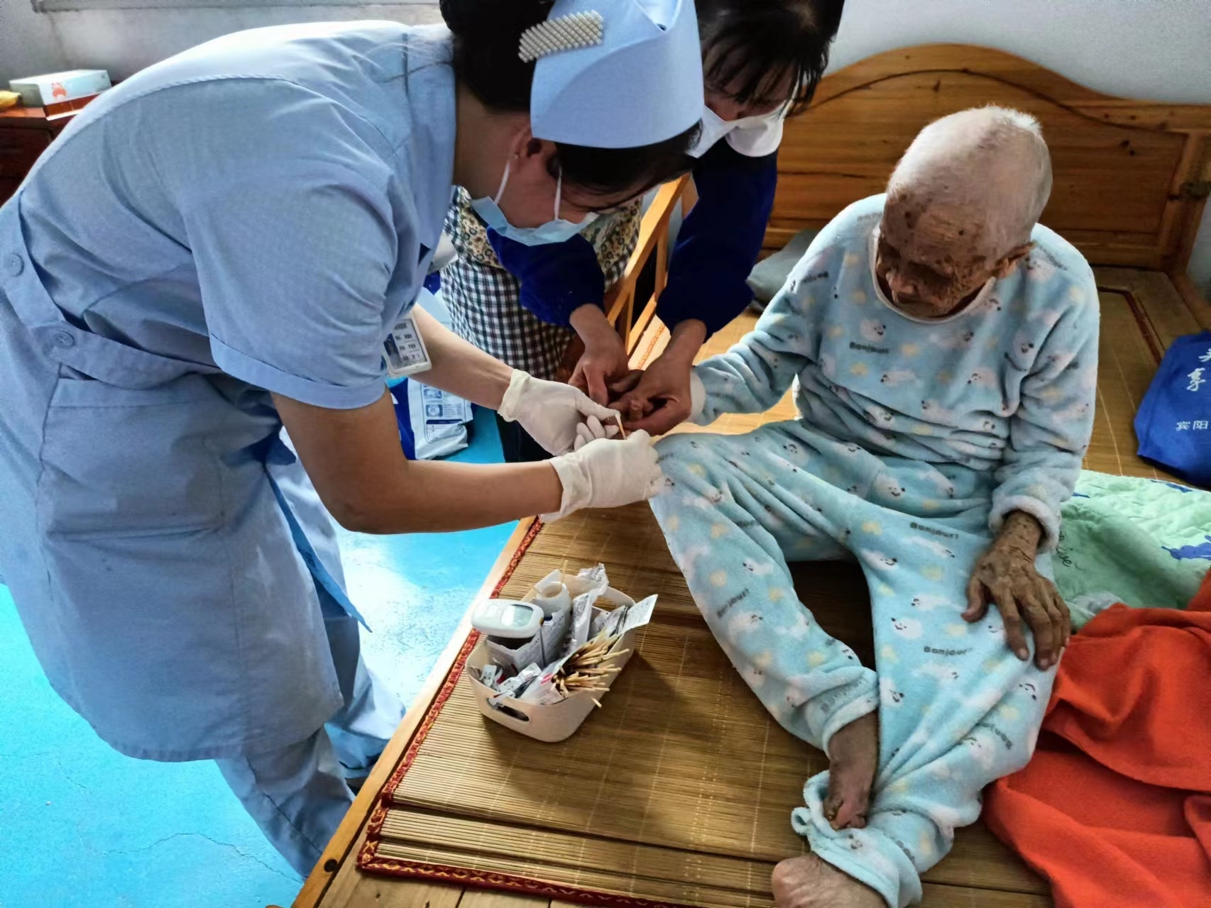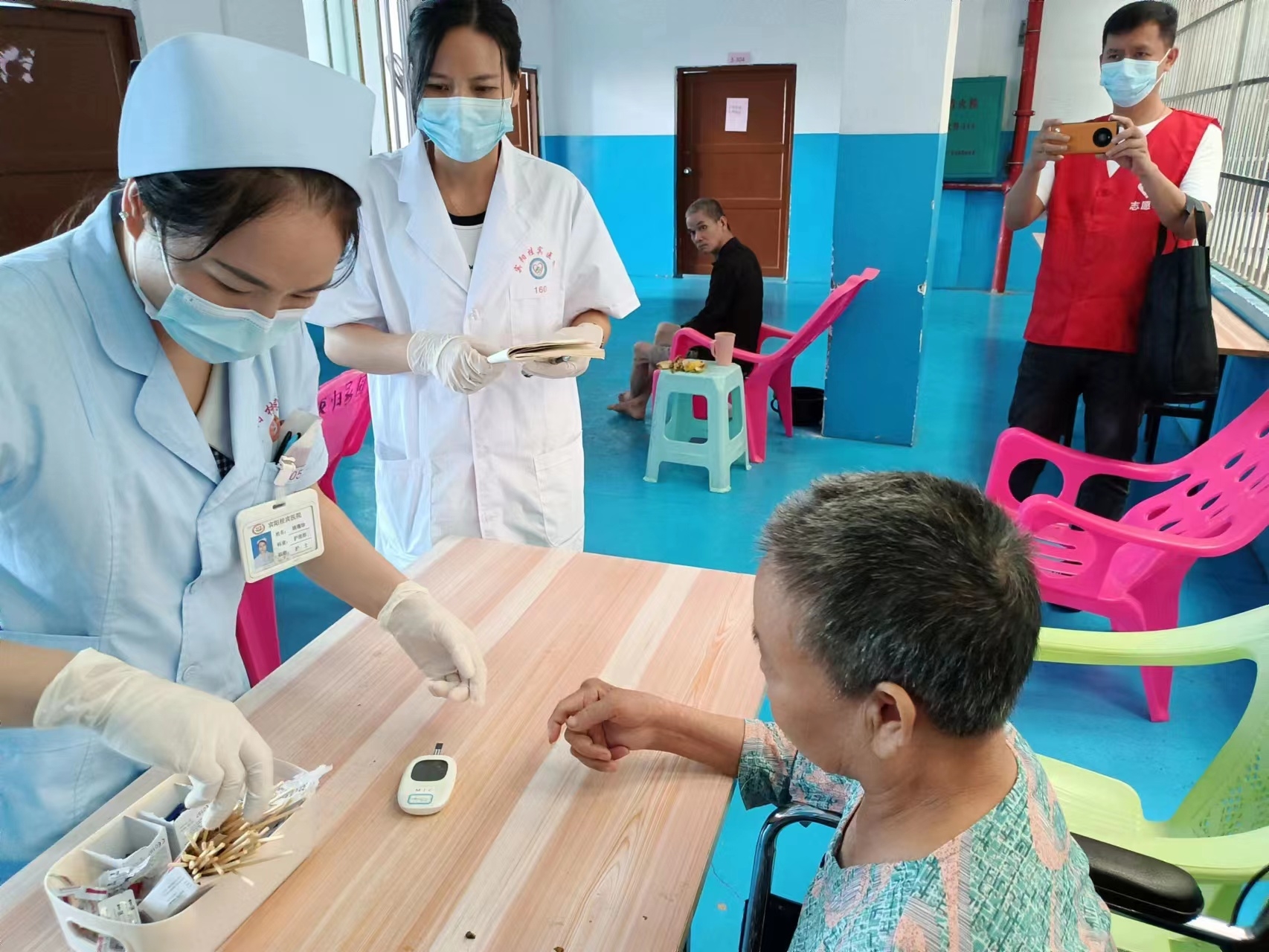 宾阳县桂宾医院的院长:封安皓的支持和参与,带领:宾阳县桂宾医院的主任医师,医院护士,来到宾阳县家兴养老院给高龄老人免费义诊,检查身体,测血糖,测血脂,量血压,做健康指导,关爱高龄老人。