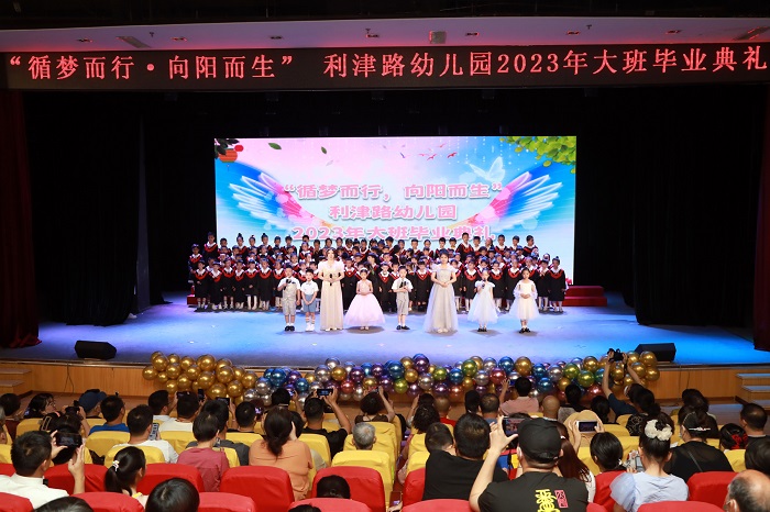 6月28日,为了给孩子们的幼儿园生活留下美好回忆,青岛市市北区利津路幼儿园举行“循梦而行 向阳而生”主题大班毕业典礼。